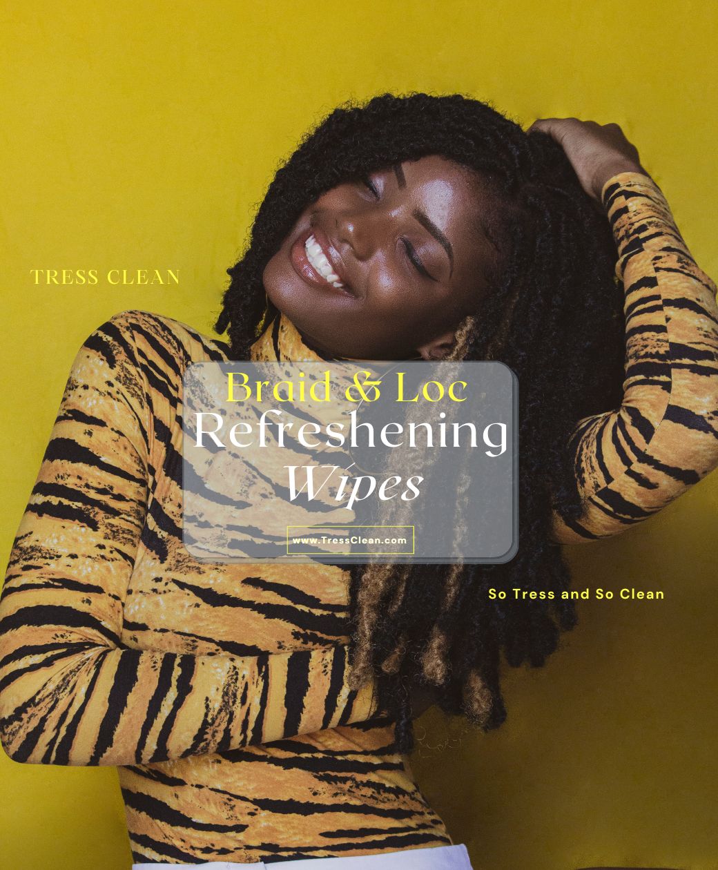 Non-medicated wipes used to clean and freshen the scalp for an in-between-clean while not compromising braid and loc hairstyles.